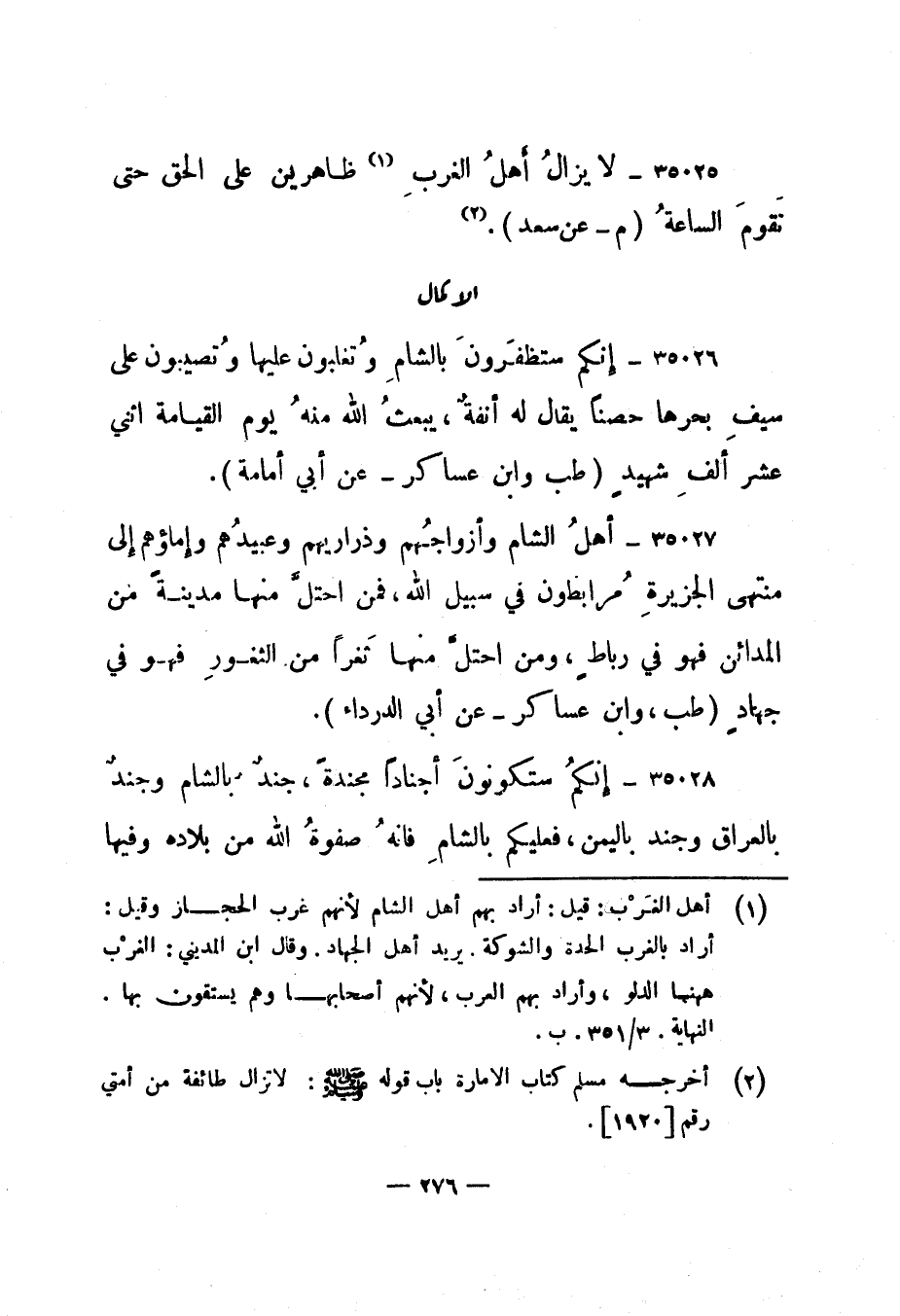 35025- " لا يزال أهل الغرب 1 ظاهرين على الحق حتى تقوم الساعة. " م - عن سعد". 2