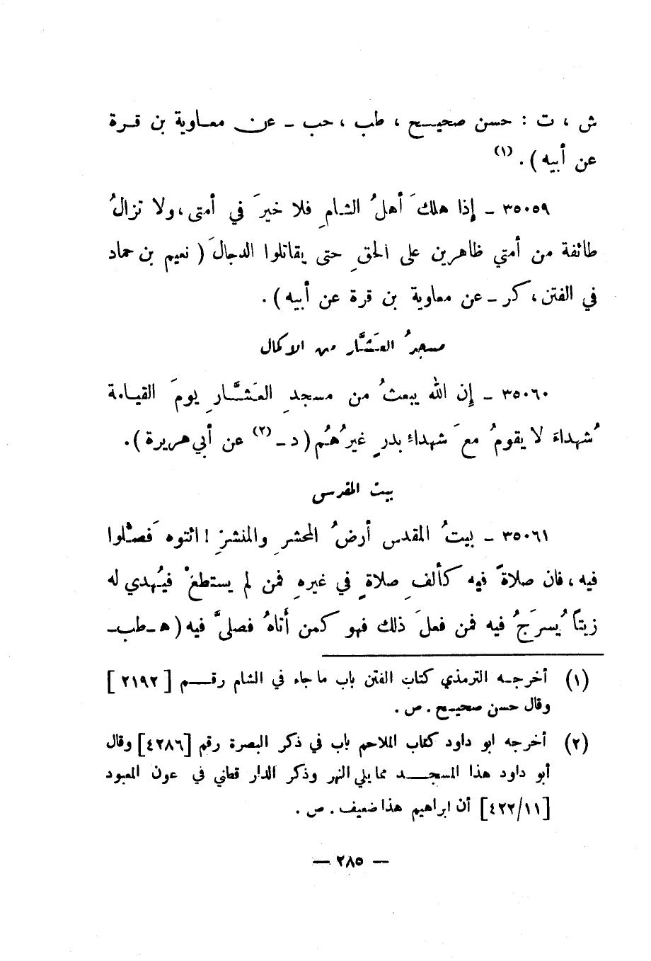 1 أخرجه الترمذي كتاب الفتن باب ما جاء في الشام رقم "2192" وقال حسن صحيح. ص.