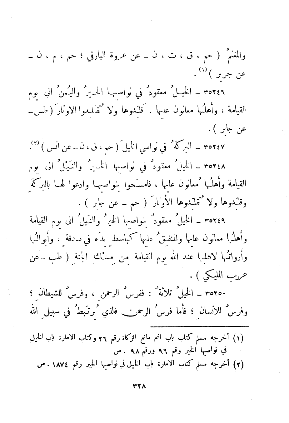 35247- " البركة في نواصي الخيل. " حم، ق، ن - عن أنس"2.