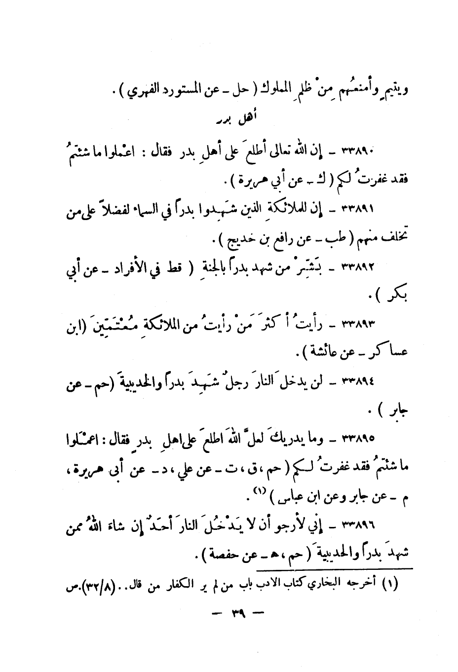 33892- "بشر من شهد بدرا بالجنة. " قط في الأفراد - عن أبي بكر".
