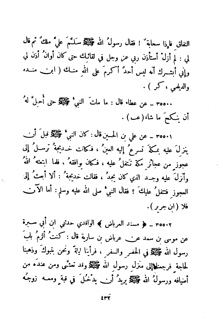 35500- عن عطاء قال: ما مت النبي صلى الله عليه وسلم حتى أحل له أن ينكح ما شاء. "عب".
