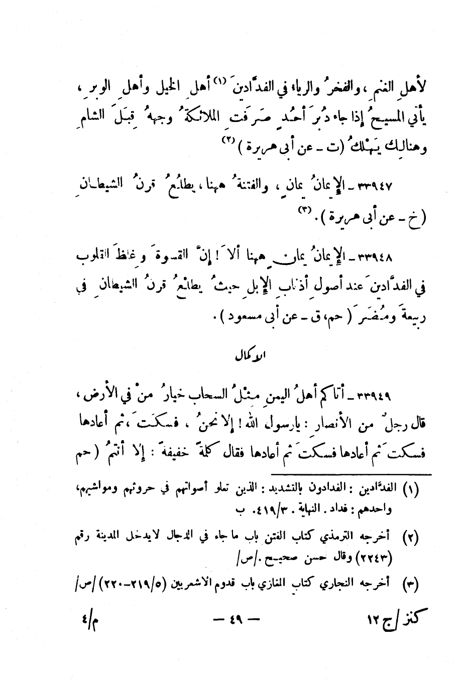 33947- "الإيمان يمان، والفتنة ههنا، يطلع قرن الشيطان. " خ - عن أبي هريرة"3.