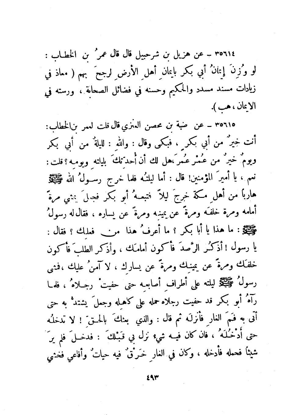 35614- عن هزيل بن شرحبيل قال قال عمر بن الخطاب: لو وزن إيمان أبي بكر بإيمان أهل الأرض لرجح بهم. "معاذ في زيادات مسند مسدد والحكيم وحسنه في فضائل الصحابة، ورسته في الإيمان، هب".