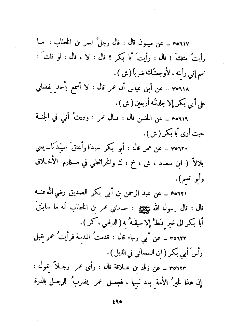 35623- عن زياد بن علاقة قال: رأى عمر رجلا يقول: إن هذا لخير الأمة بعد نبيها، فجعل عمر يضرب الرجل بالدرة