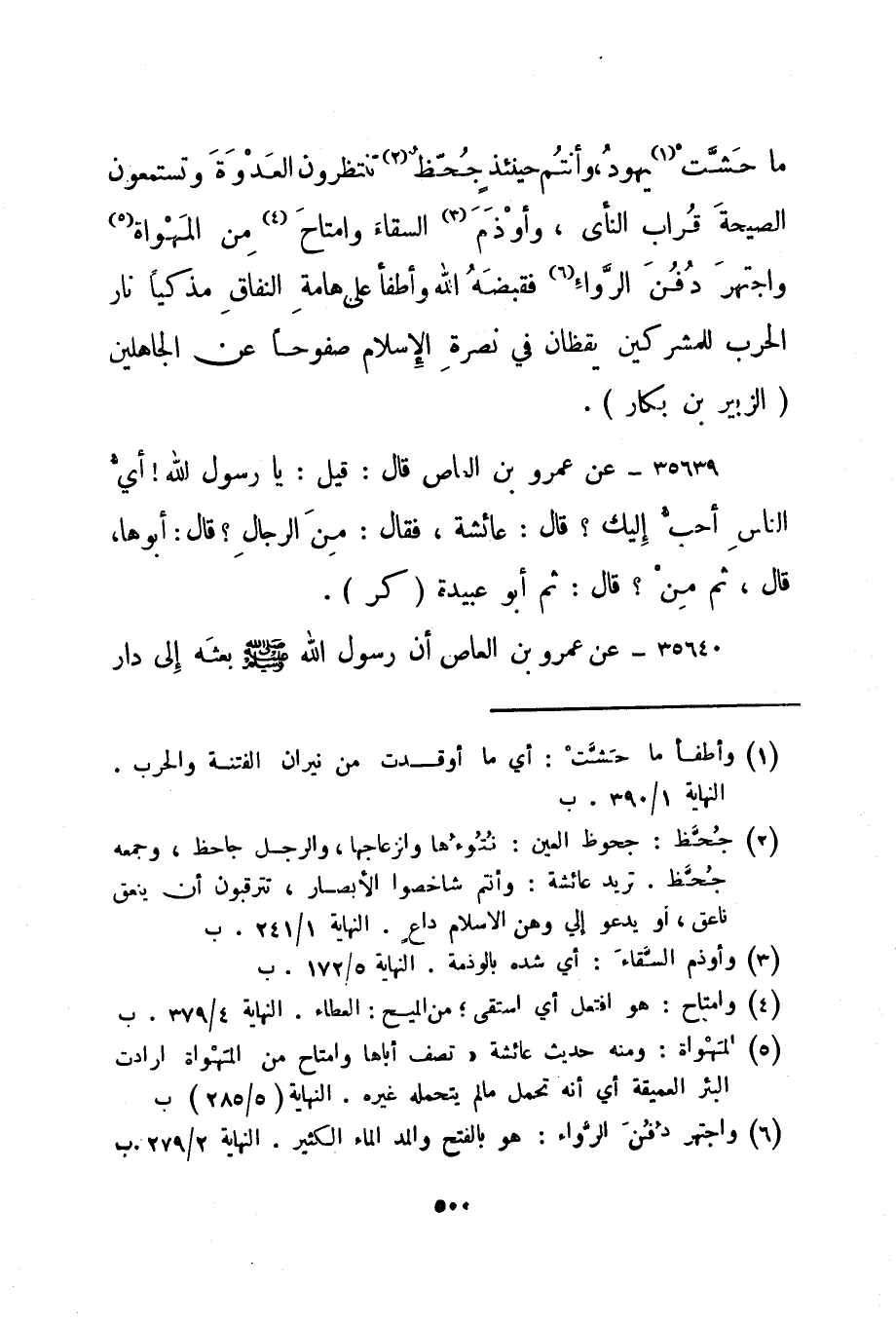 35639- عن عمرو بن العاص قال: قيل: يا رسول الله! أي الناس أحب إليك؟ قال: "عائشة"، فقال: من الرجال؟ قال: "أبوها"، قال: ثم من؟ قال: "ثم أبو عبيدة". "كر".