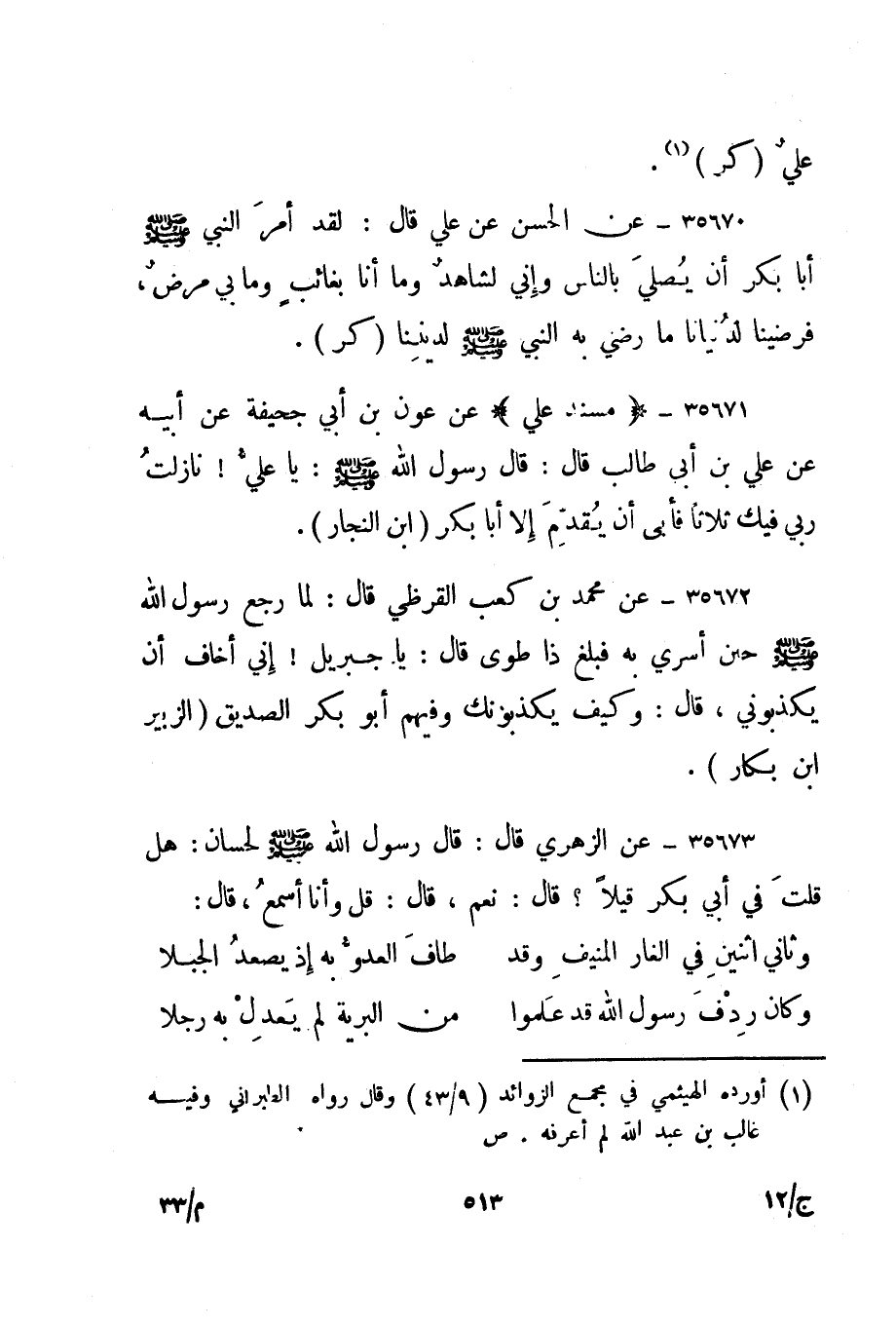 35671- "مسند علي" عن عون بن أبي جحيفة عن أبيه عن علي بن أبي طالب قال: قال رسول الله صلى الله عليه وسلم: " يا علي! نازلت ربي فيك ثلاثا فأبى أن يقدم إلا أبا بكر ". "ابن النجار".