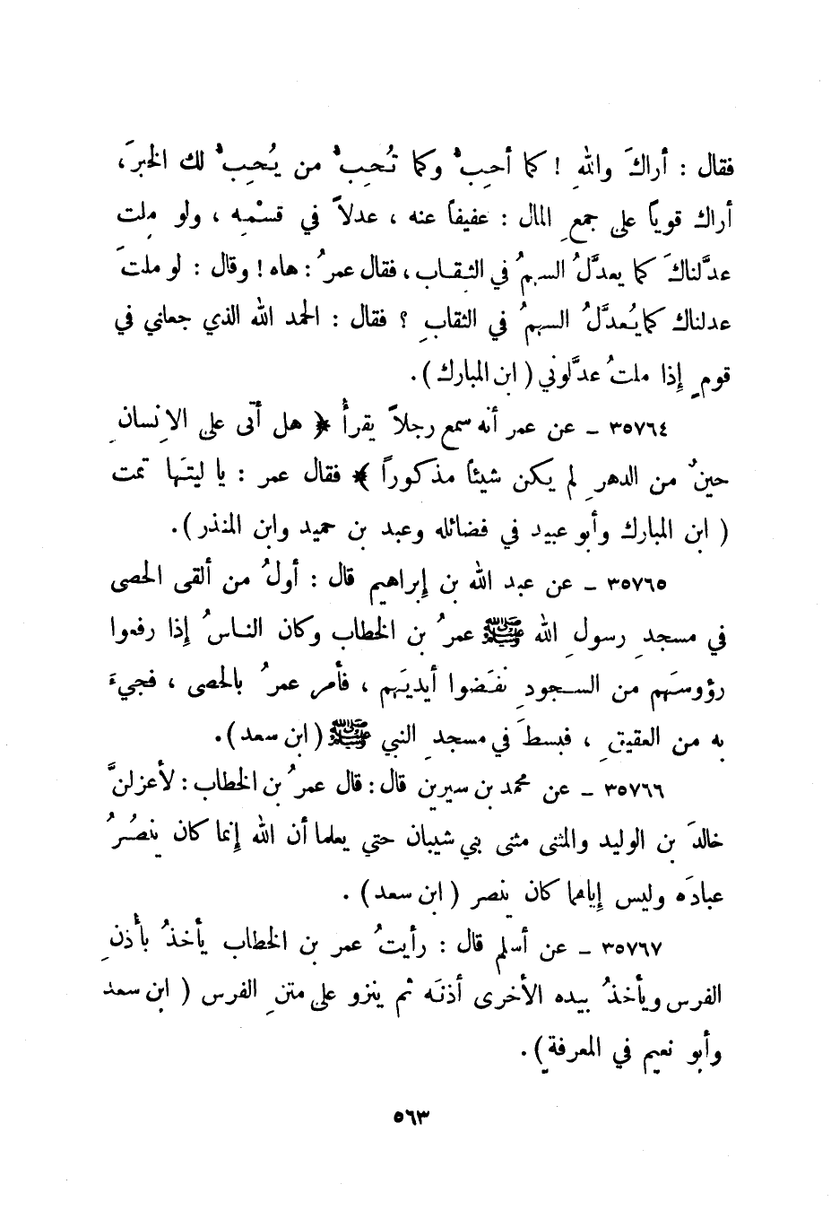 35766- عن محمد بن سيرين قال: قال عمر بن الخطاب: لأعزلن خالد بن الوليد والمثنى مثنى بني شيبان حتى يعلما أن الله إنما كان ينصر عباده وليس إياهما كان ينصر. "ابن سعد".