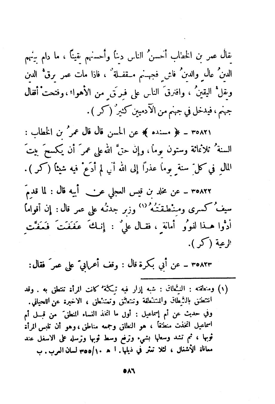 35823- عن أبي بكرة قال: وقف أعرابي على عمر فقال: