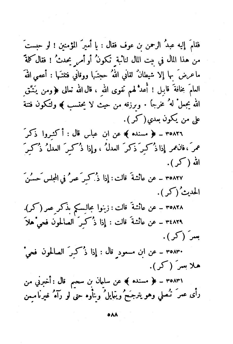 35826- "مسنده" عن ابن عباس قال: أكثروا ذكر عمر، فإن عمر إذا ذكر ذكر العدل، وإذا ذكر العدل ذكر الله. "كر".