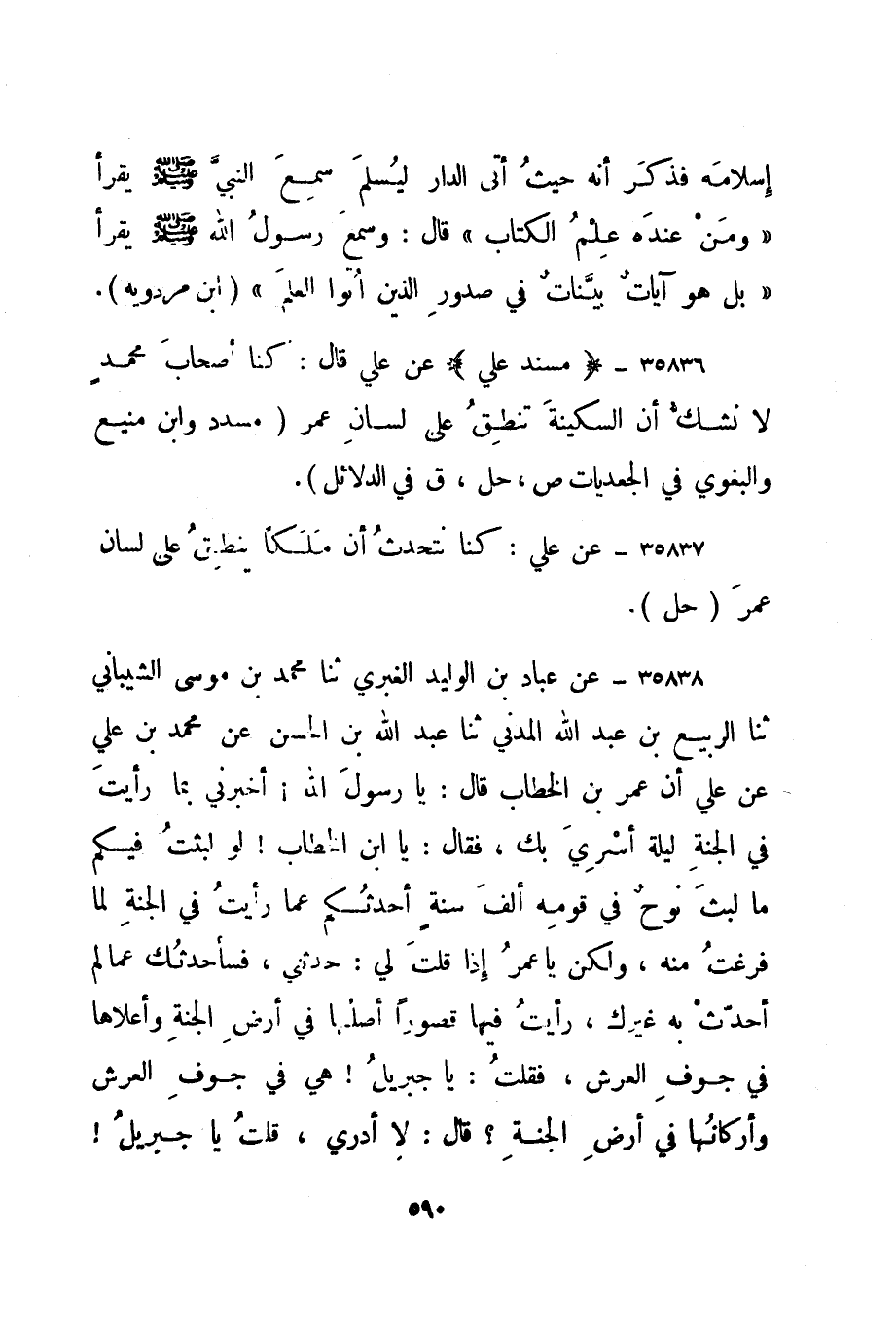 35837- عن علي: كنا نتحدث أن ملكا ينطق على لسان عمر. "حل".