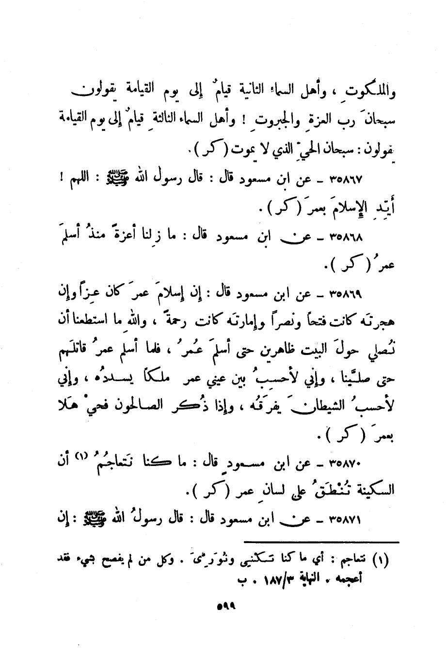 35870- عن ابن مسعود قال: ما كنا نتعاجم 1 أن السكينة تنطق على لسان عمر. "كر".