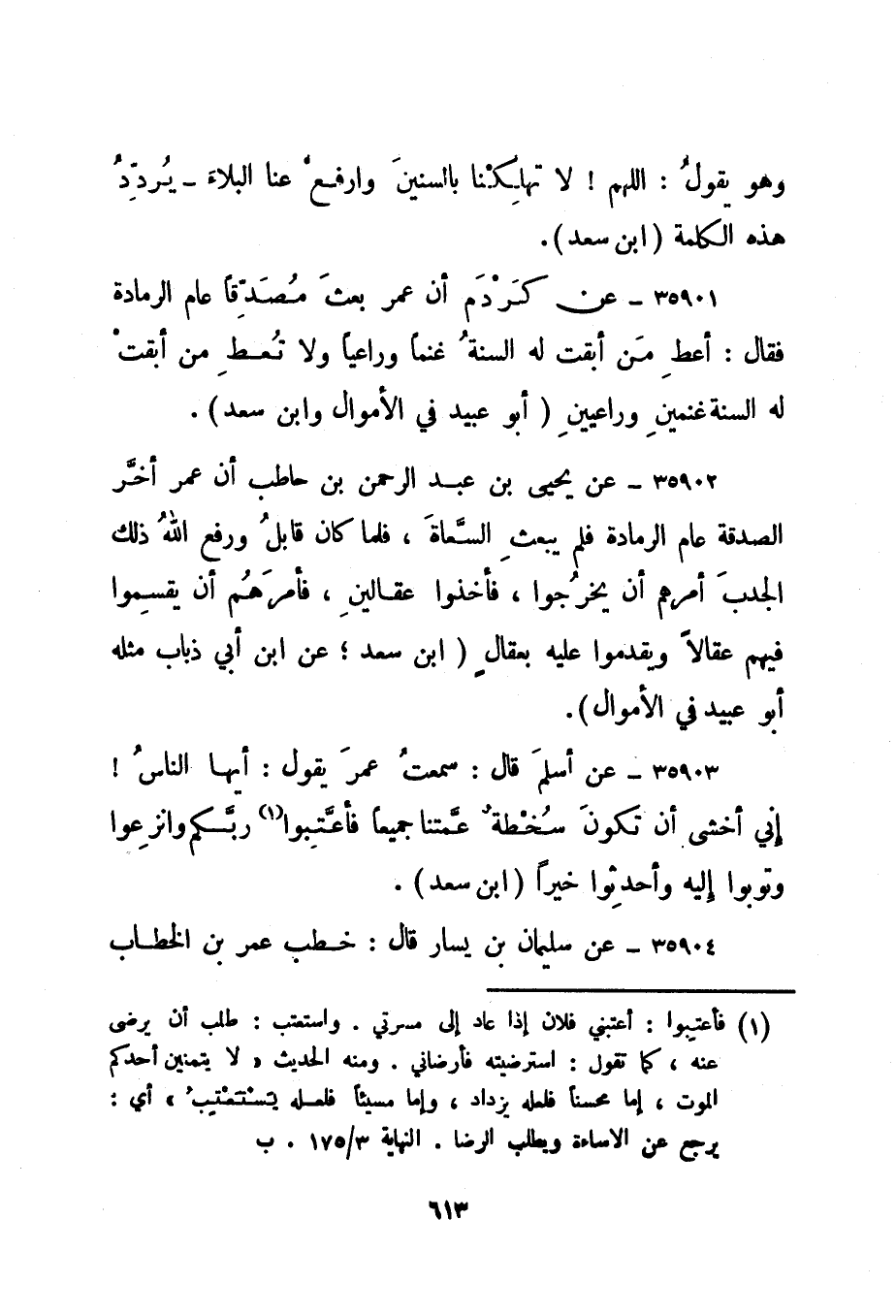 35901- عن كردم أن عمر بعث مصدقا عام الرمادة فقال: أعط من أبقت له السنة غنما وراعيا ولا تعط من أبقت له السنة غنمين وراعيين. "أبو عبيد في الأموال وابن سعد".