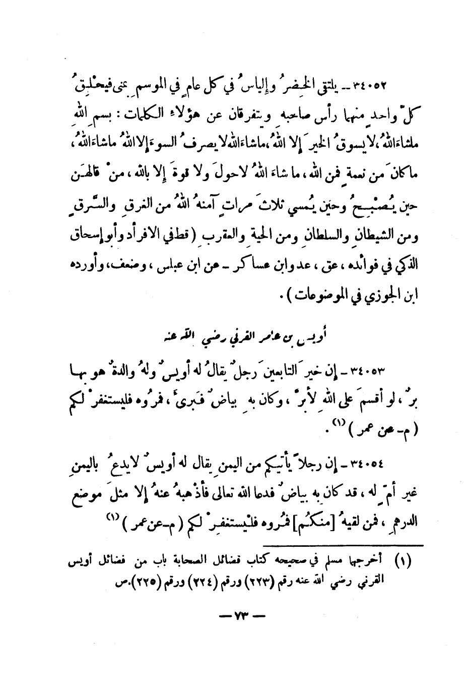 1 أخرجه مسلم في صحيحه كتاب فضائل الصحابة باب من فضائل أويس القرني رضي الله عنه رقم "223" ورقم "224" ورقم "225". ص.
