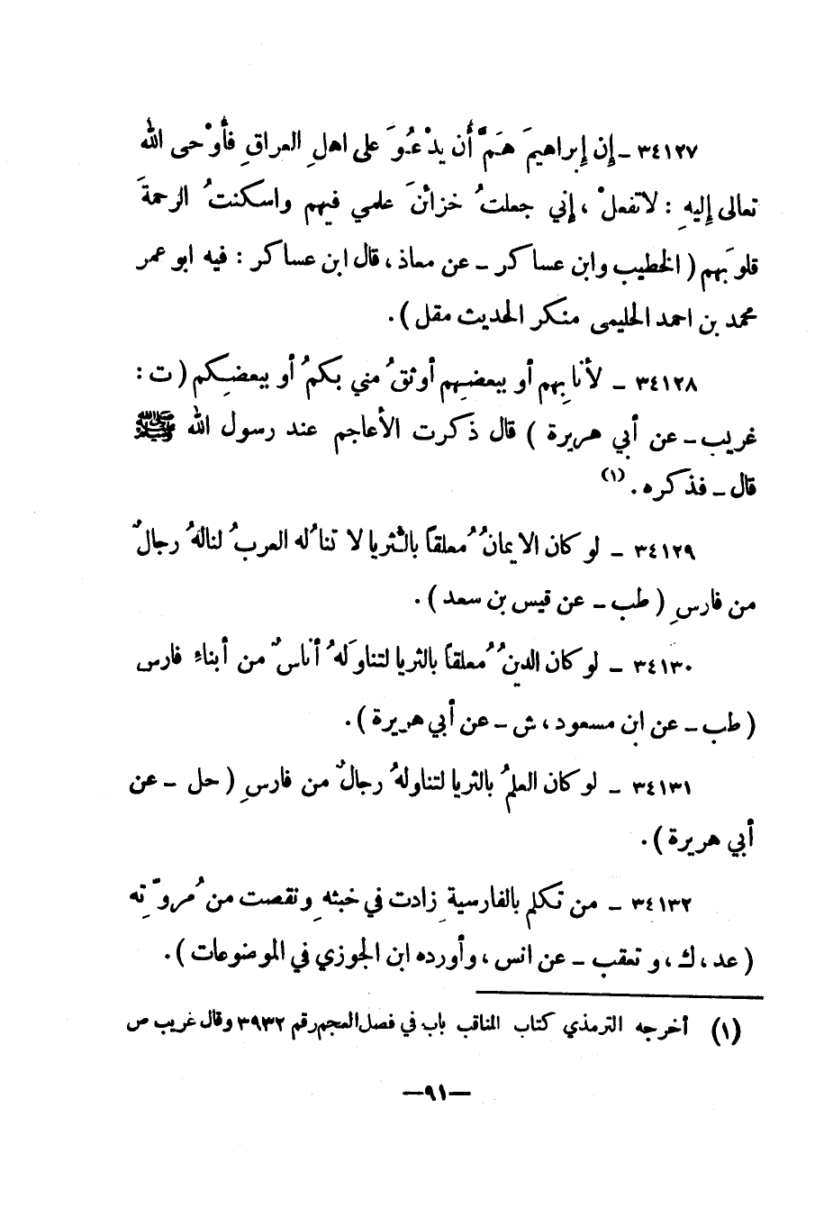 34131- "لو كان العلم بالثريا لتناوله رجال من فارس. " حل - عن أبي هريرة".