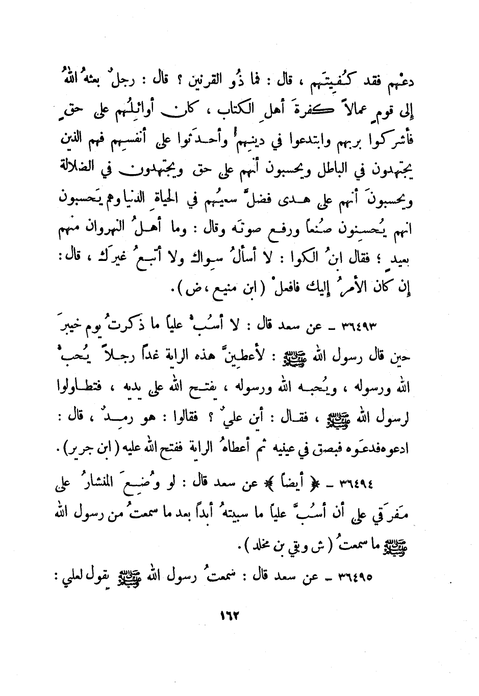 36495- عن سعد قال: سمعت رسول الله صلى الله عليه وسلم يقول لعلي: