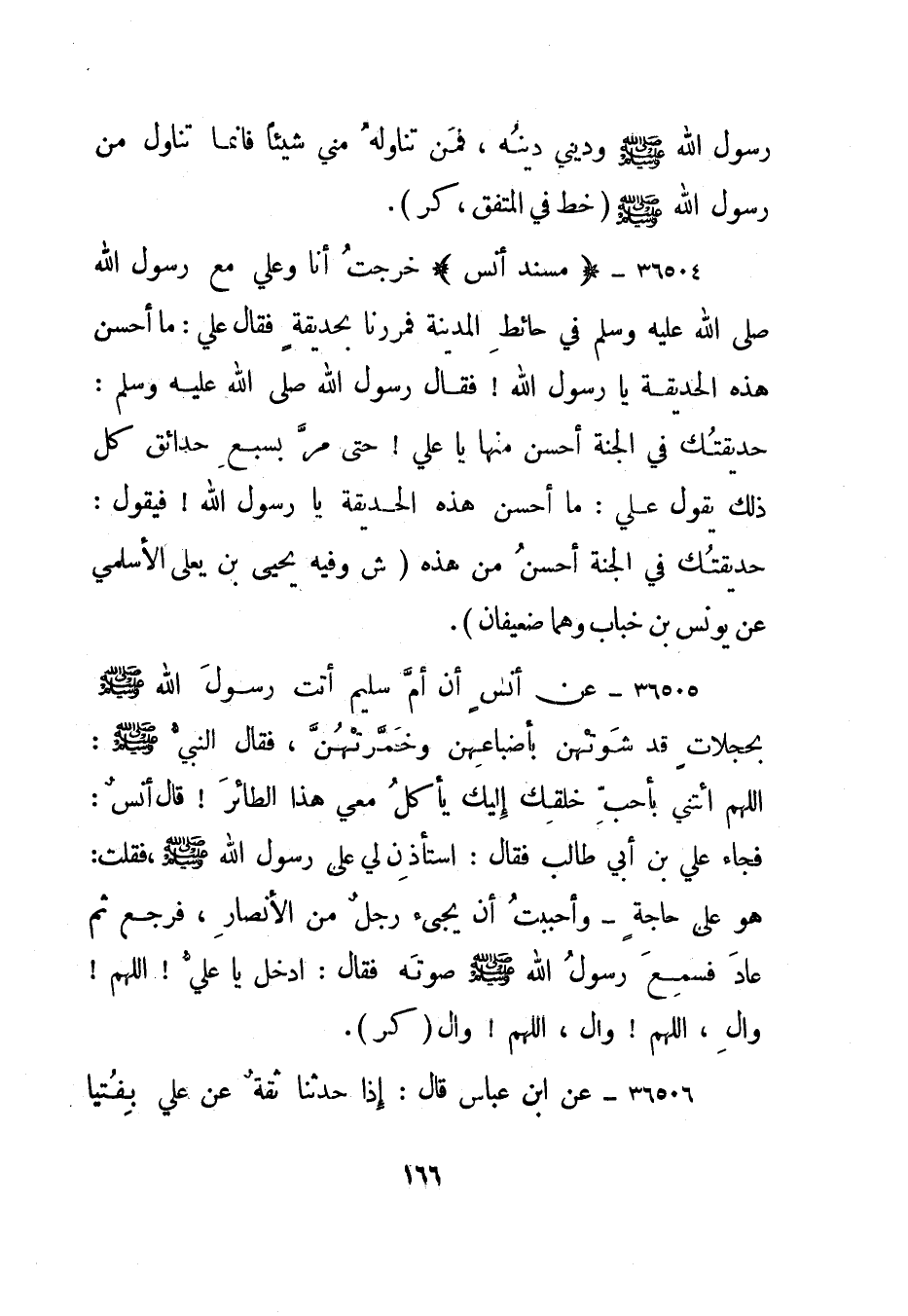 36504- "مسند أنس" خرجت أنا وعلي مع رسول الله صلى الله عليه وسلم في حائط المدينة فمررنا بحديقة فقال علي: ما أحسن هذه الحديقة يا رسول الله! فقال رسول الله صلى الله عليه وسلم: حديقتك في الجنة أحسن منها يا علي! حتى مر بسبع حدائق كل ذلك يقول علي: ما أحسن هذه الحديقة يا رسول الله! فيقول: حديقتك في الجنة أحسن من هذه. "ش" وفيه يحيى بن يعلى الأسلمي عن يونس بن خباب وهما ضعيفان".