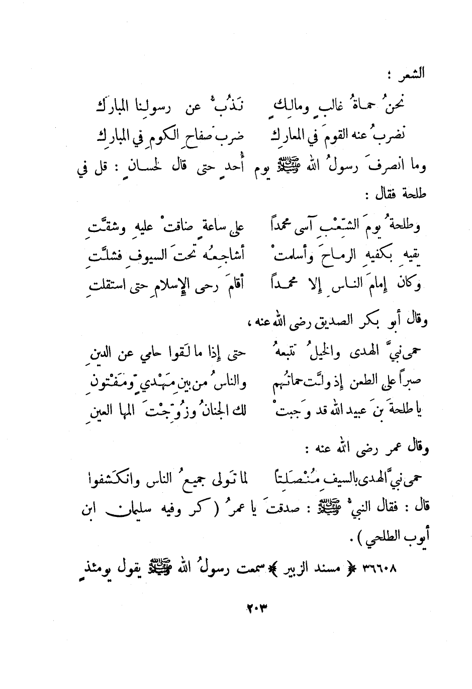وما انصرف رسول الله صلى الله عليه وسلم يوم أحد حتى قال لحسان: قل في طلحة فقال: