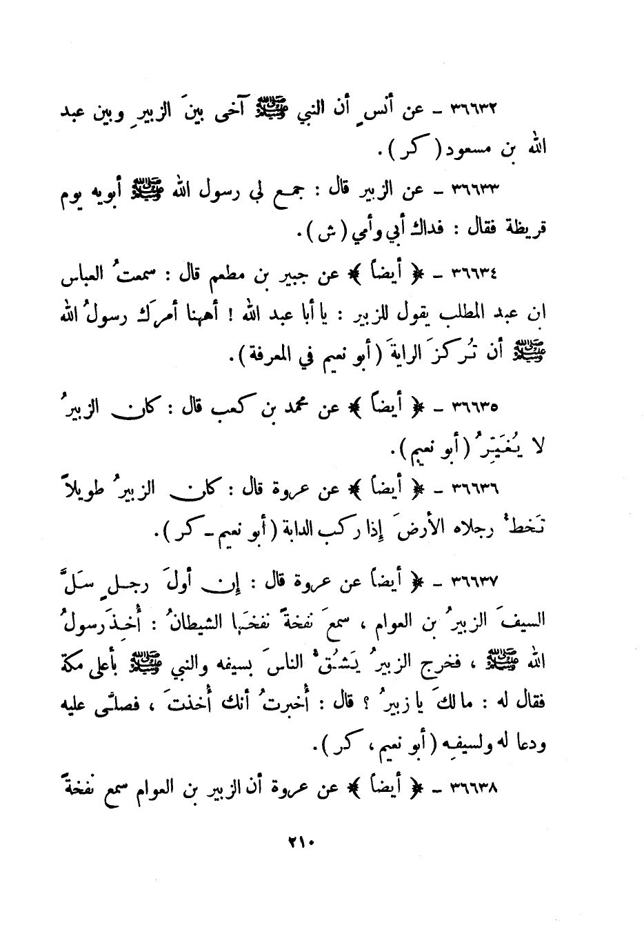 36635- "أيضا" عن محمد بن كعب قال: كان الزبير لا يغير."أبو نعيم".