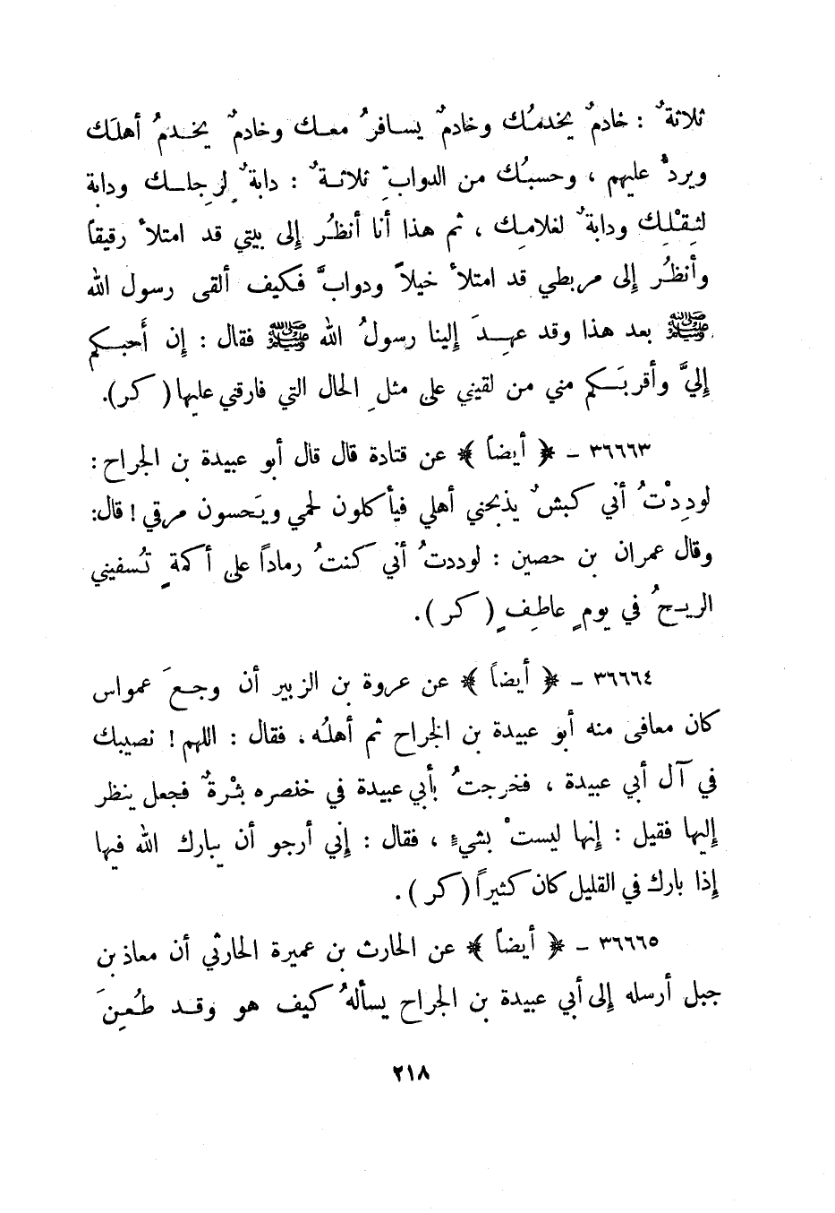 36665- "أيضا" عن الحارث بن عميرة الحارثي أن معاذ بن جبل أرسله إلى أبي عبيدة بن الجراح يسأله كيف هو وقد طعن
