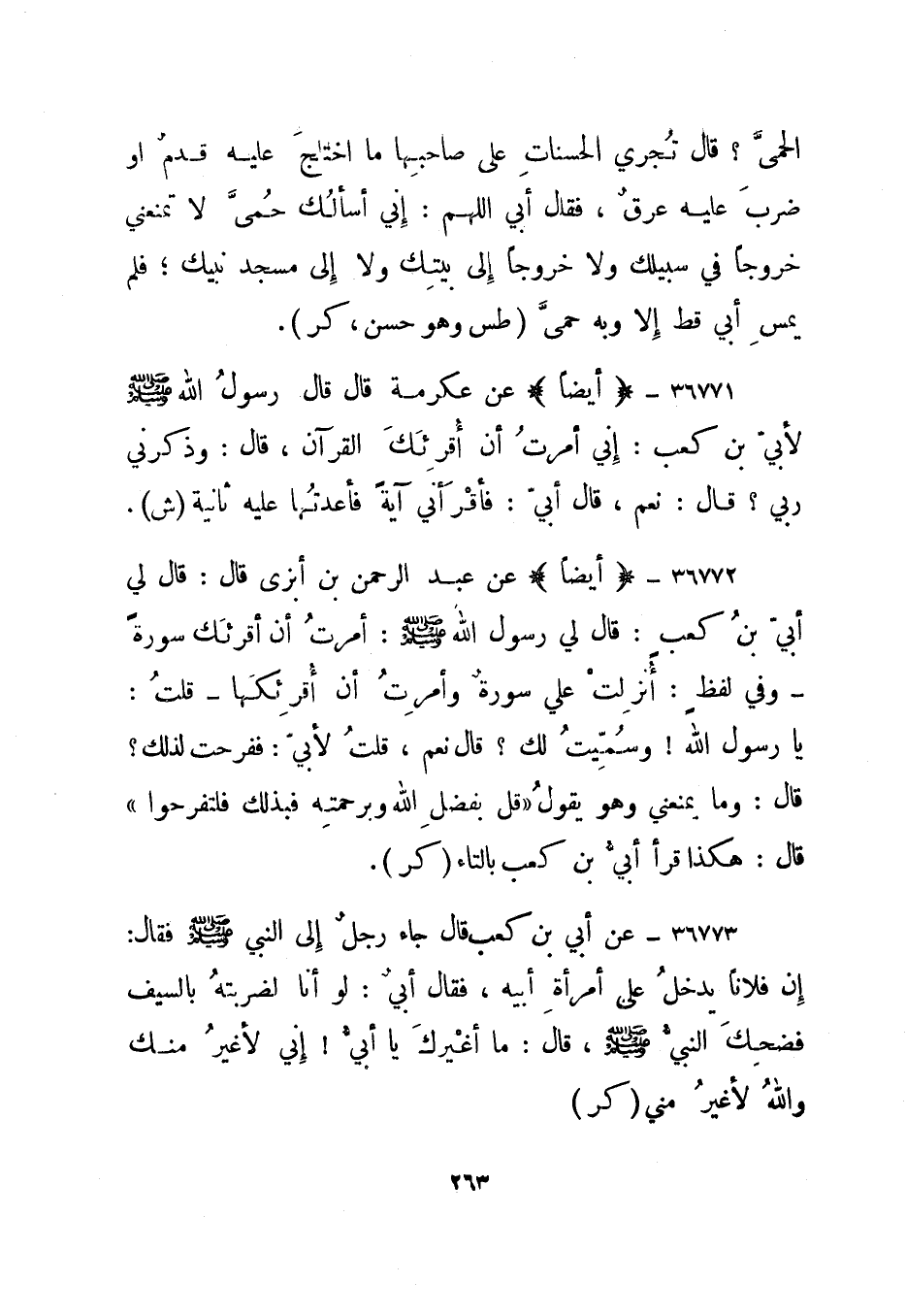 36772- "أيضا" عن عبد الرحمن بن أبزى قال: قال لي أبي بن كعب: قال لي رسول الله صلى الله عليه وسلم: أمرت أن أقرئك سورة - وفي لفظ: أنزلت علي سورة وأمرت أن أقرئكها - قلت: يا رسول الله! وسميت لك؟ قال نعم، قلت لأبي: ففرحت لذلك؟ قال: وما يمنعني وهو يقول: "قل بفضل الله وبرحمته فبذلك فلتفرحوا" قال: هكذا قرأ أبي بن كعب بالتاء. "كر".