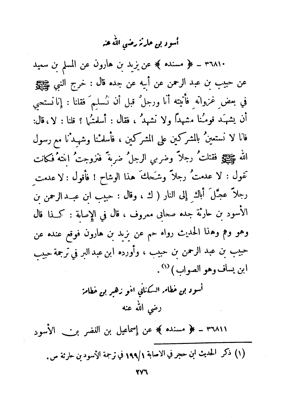 36811- "مسنده" عن إسماعيل بن النضر بن الأسود