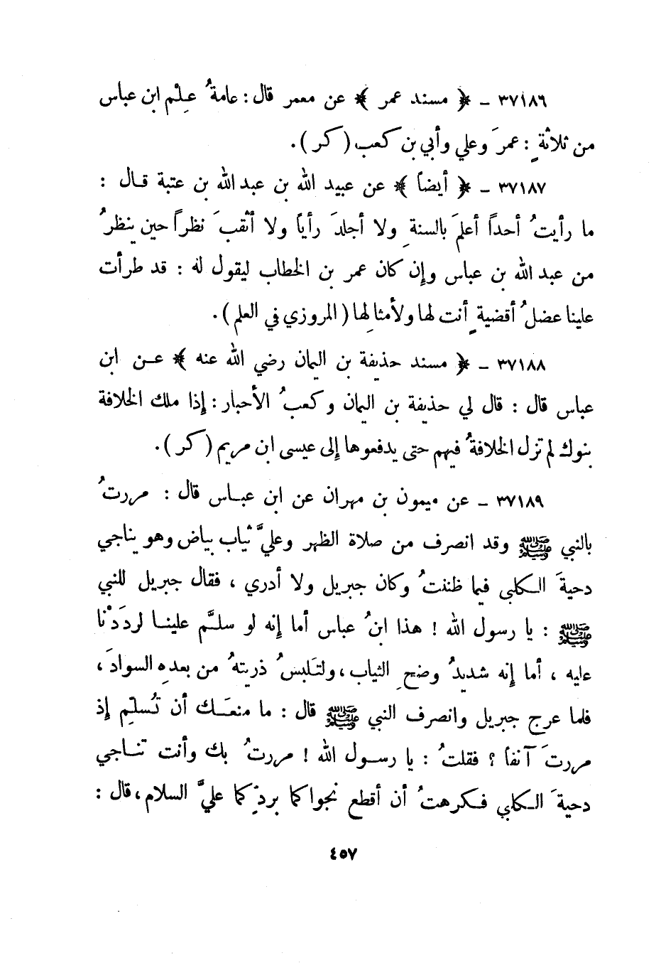 37187- "مسند عمر" عن معمر قال: عامة علم ابن عباس من ثلاثة: عمر وعلي وأبي بن كعب.