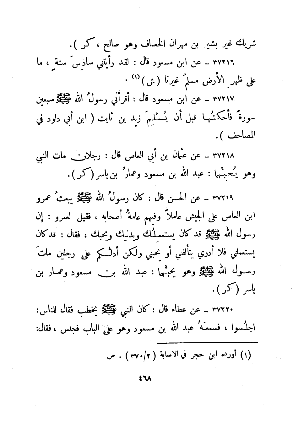 37218- عن ابن مسعود قال: أقرأني رسول الله صلى الله عليه وسلم سبعين سورة فأحكمتها قبل أن يسلم زيد بن ثابت."ابن أبي داود في المصاحف".