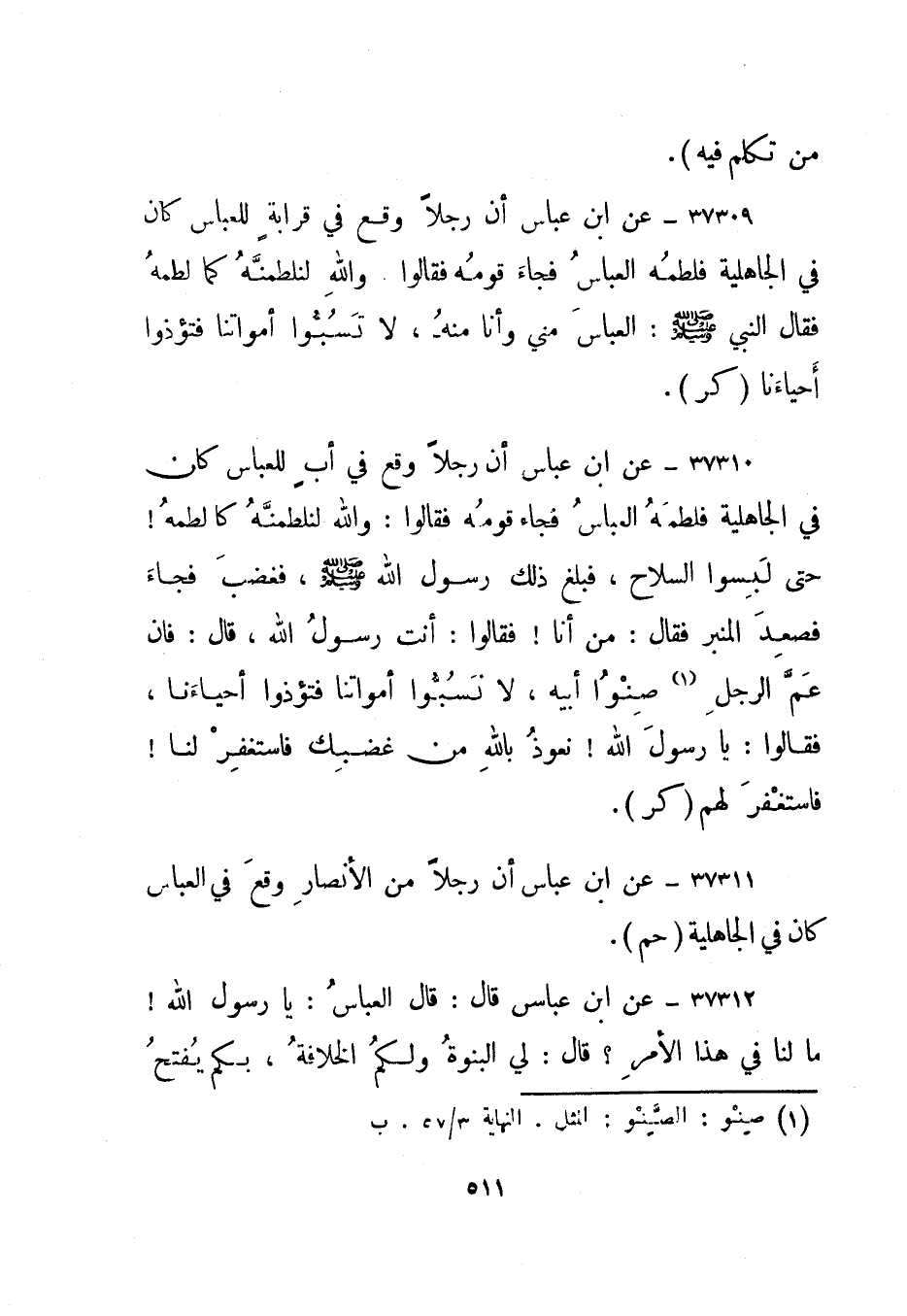 37312- عن ابن عباس أن رجلا من الأنصار وقع في العباس كان في الجاهلية. "حم".