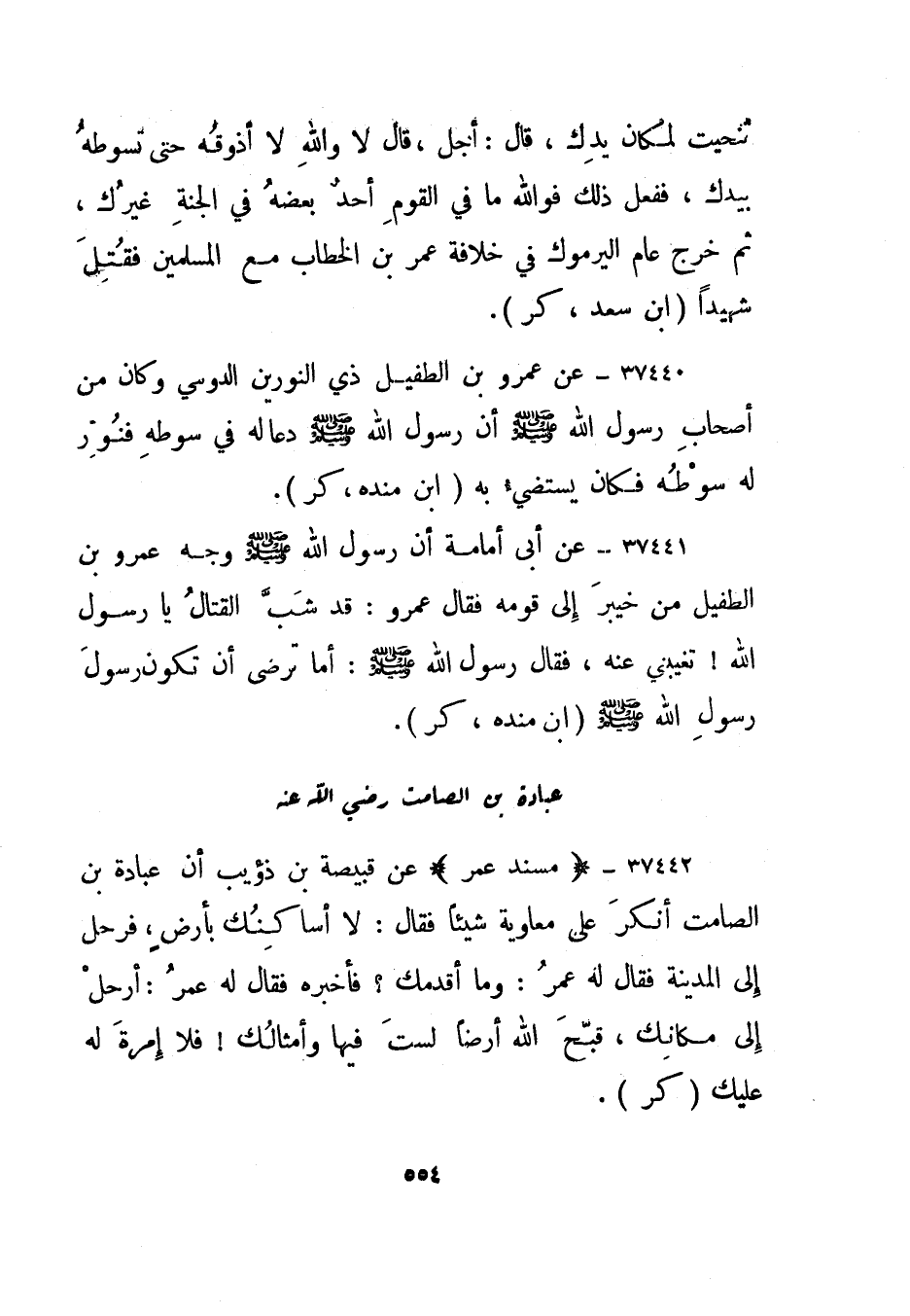 37441- عن عمرو بن الطفيل ذي النورين الدوسي وكان من أصحاب رسول الله صلى الله عليه وسلم أن رسول الله صلى الله عليه وسلم دعا له في سوطه فنور له سوطه فكان يستضيء به.