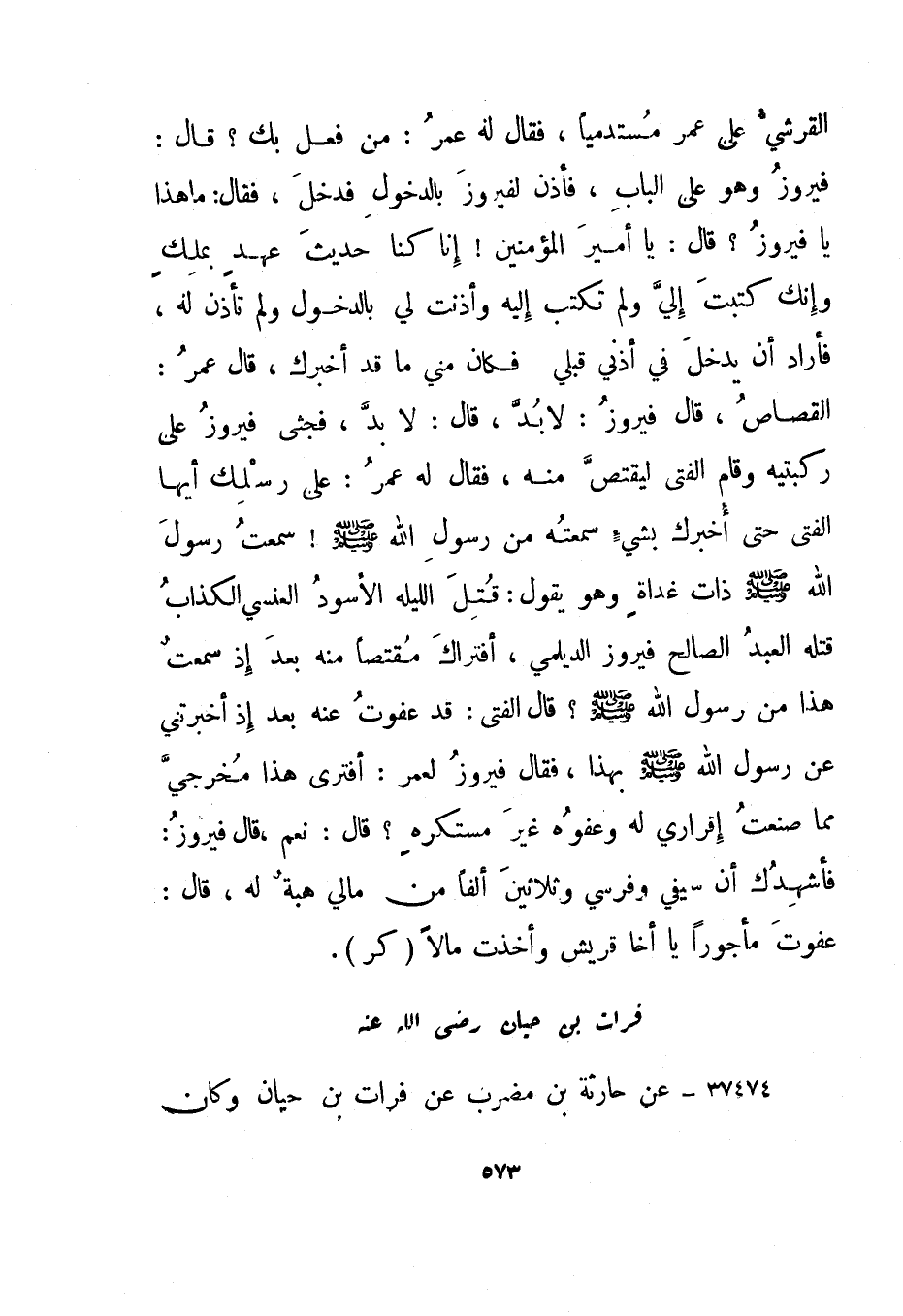 37475- عن حارثة بن مضرب عن فرات بن حيان وكان