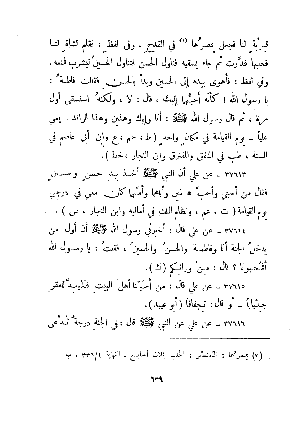 37617- عن علي قال: أخبرني رسول الله صلى الله عليه وسلم أن أول من يدخل الجنة أنا وفاطمة والحسن والحسين، فقلت: يا رسول الله أفمحبونا؟ قال: من ورائكم. "ك".