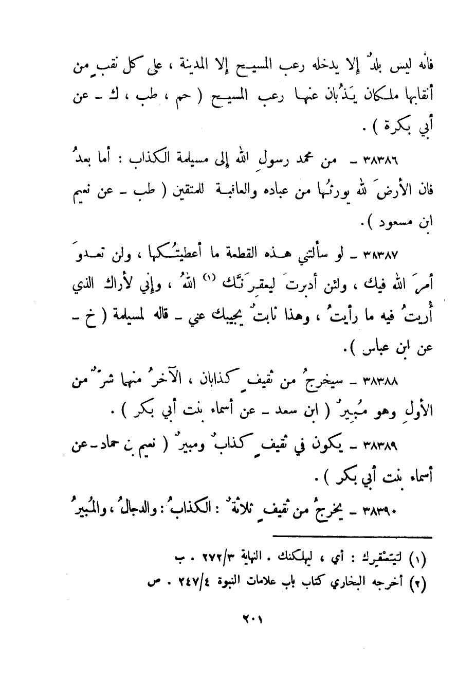 38390- " يخرج من ثقيف ثلاثة: الكذاب: والدجال، والمبير