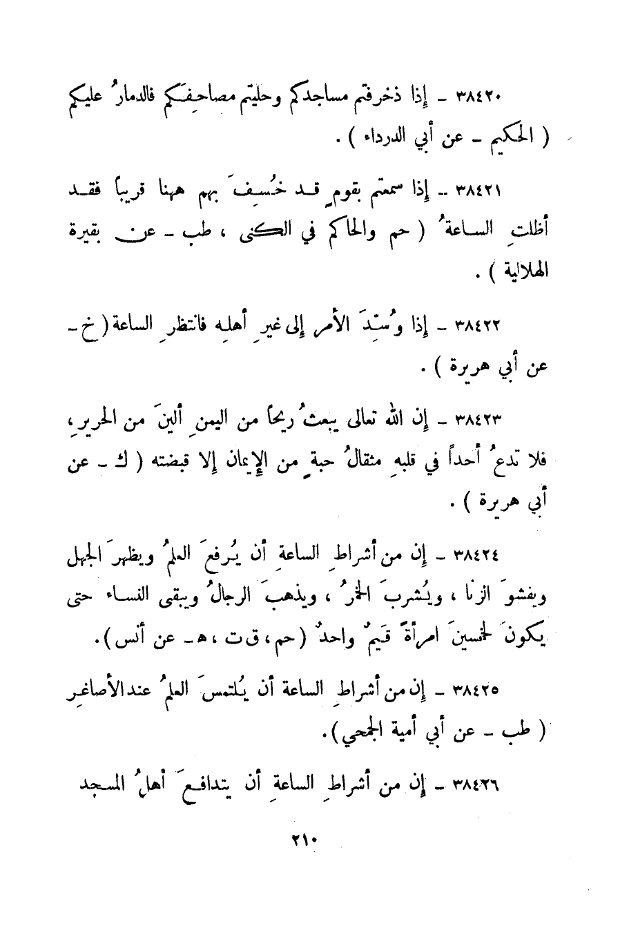 38426- "إن من أشراط الساعة أن يتدافع أهل المسجد،
