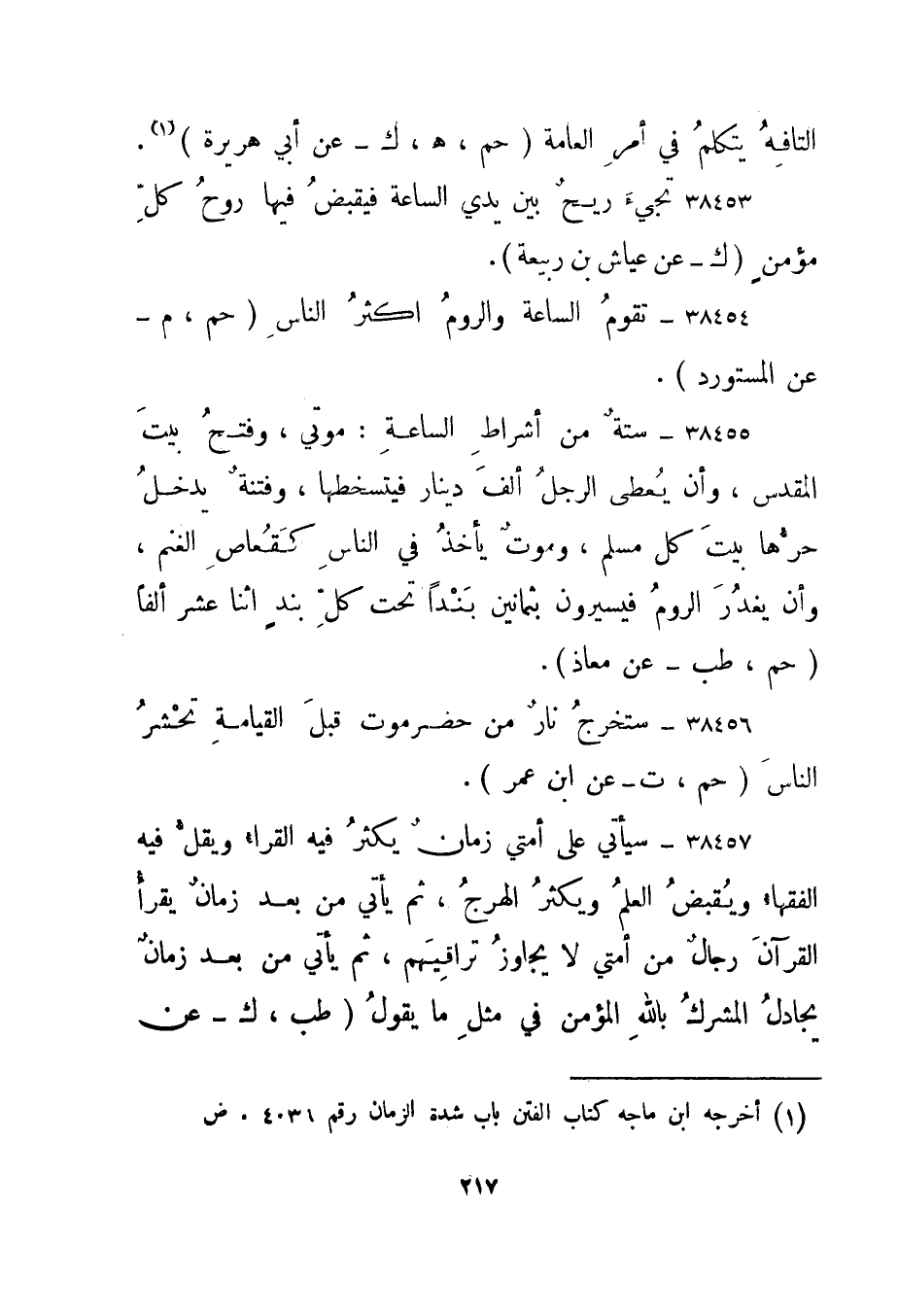 38454- "تقوم الساعة والروم أكثر الناس." حم، م - عن المستورد".