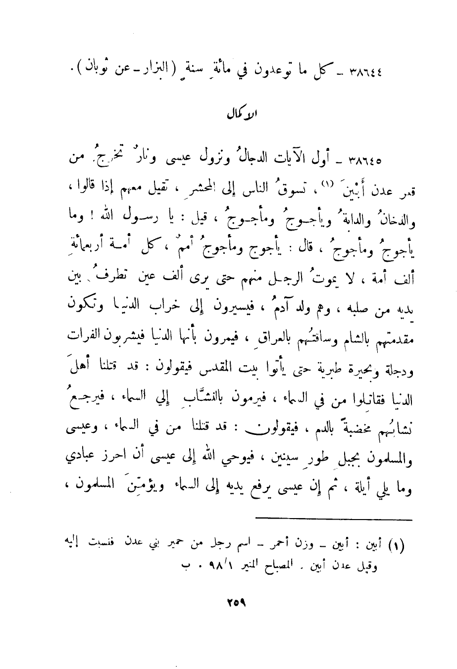 38644- "كل ما توعدون في مائة سنة." البزار - عن ثوبان".
