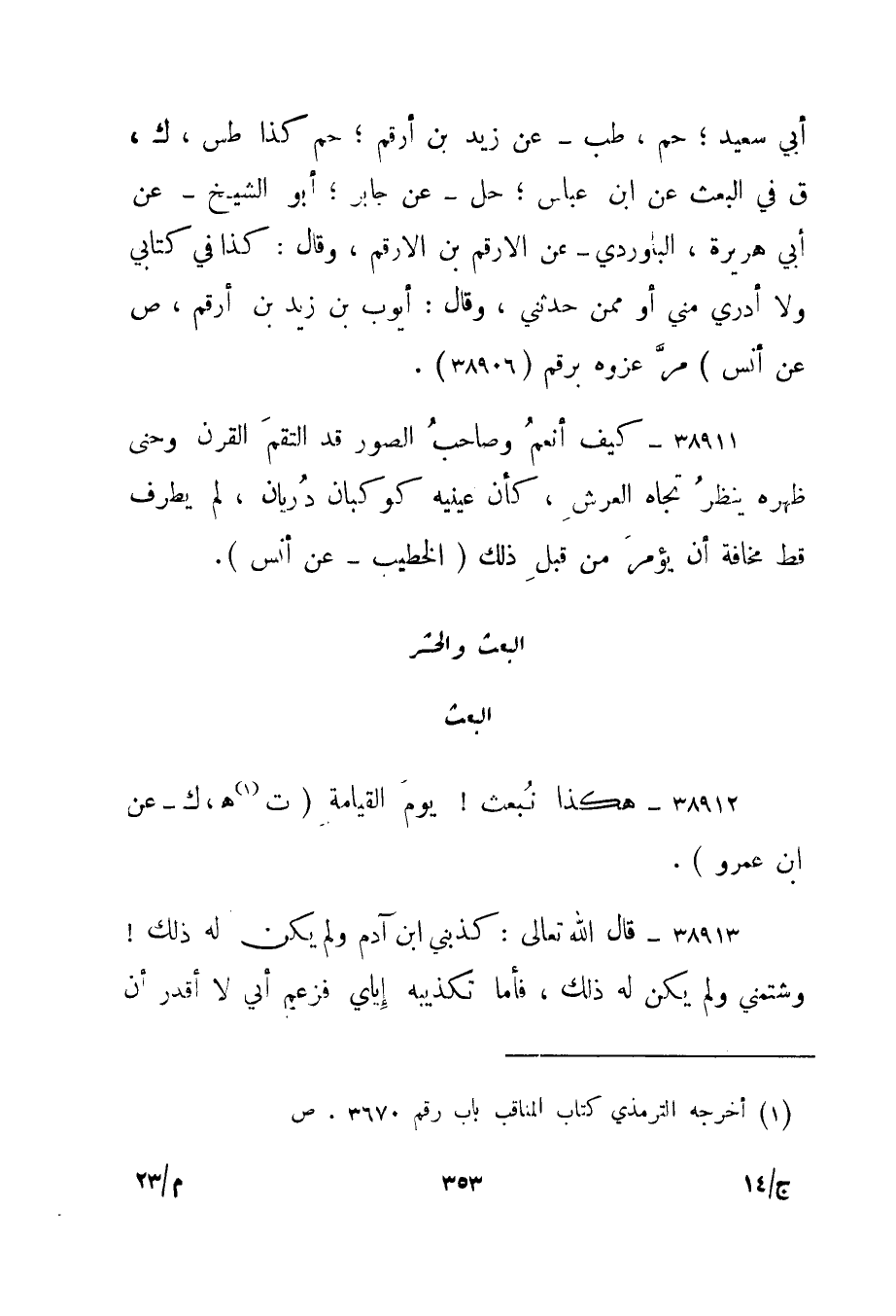 38912- "هكذا نبعث! يوم القيامة." ت1 هـ، ك - عن ابن عمرو".