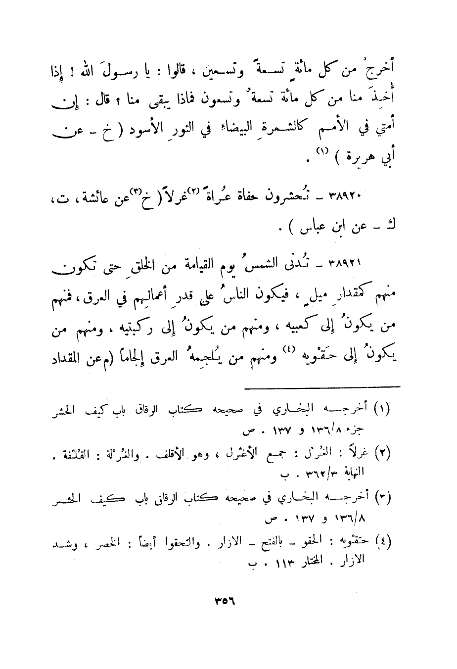 3 أخرجه البخاري في صحيحه كتاب الرقاق باب كيف الحشر جزء 136/8 و 137. ص.