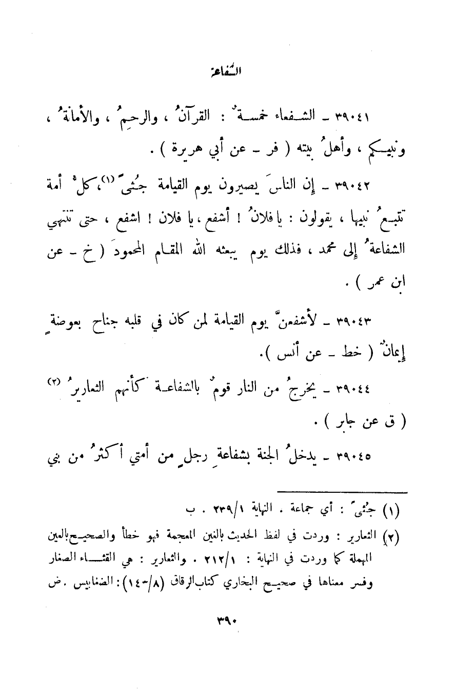 39044- "يخرج من النار قوم بالشفاعة كأنهم الثعارير 2" ق عن جابر".
