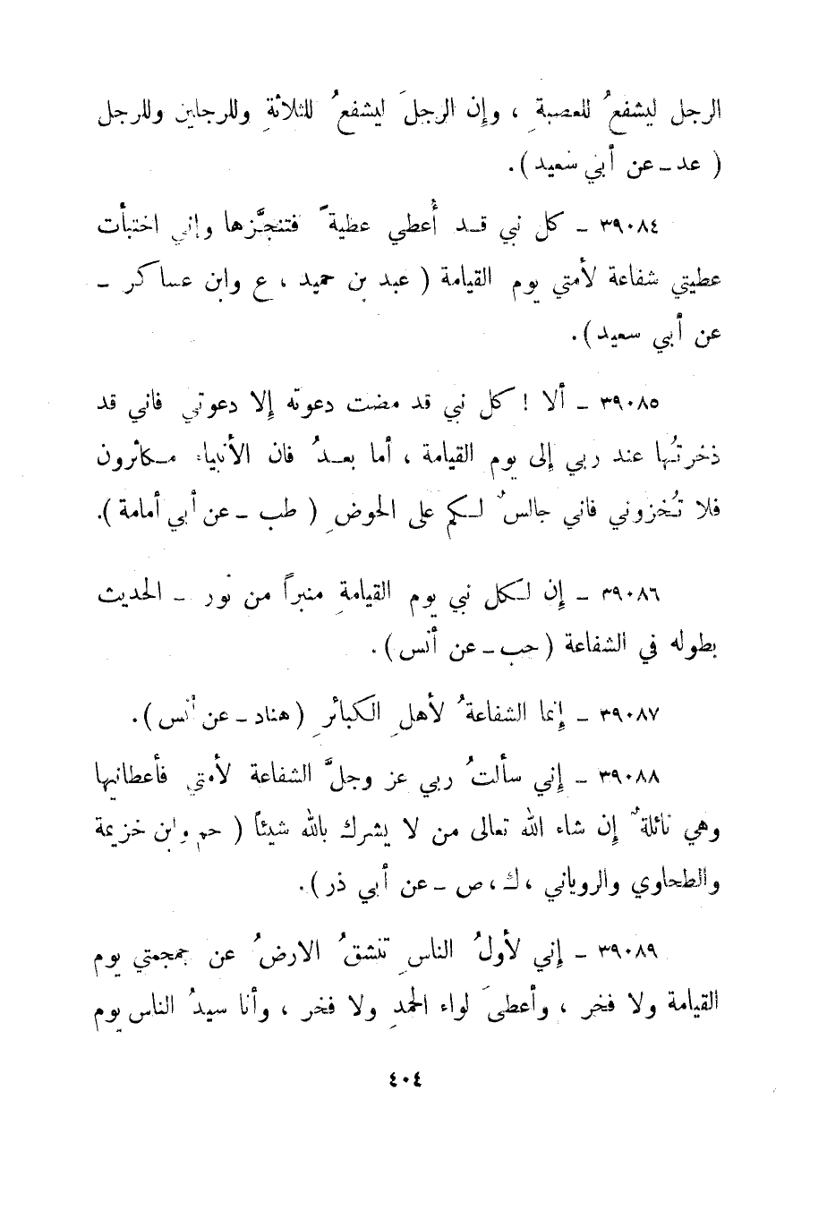 39087- "إنما الشفاعة لأهل الكبائر." هناد - عن أنس".