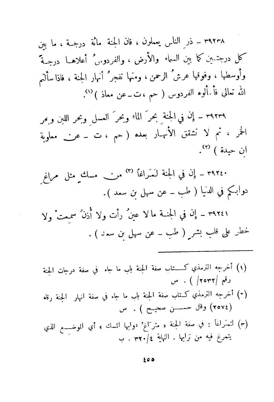 39240- "إن في الجنة لمراغا 3من مسك مثل مراغ دوابكم في الدنيا." طب - عن سهل بن سعد".