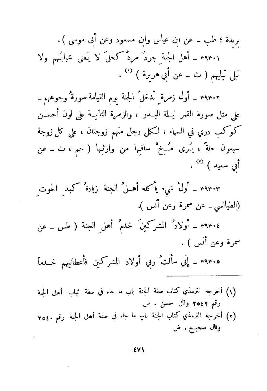 39301- "أهل الجنة جرد مرد كحل لا يفنى شبابهم ولا تبلى ثيابهم." ت - عن أبي هريرة1
