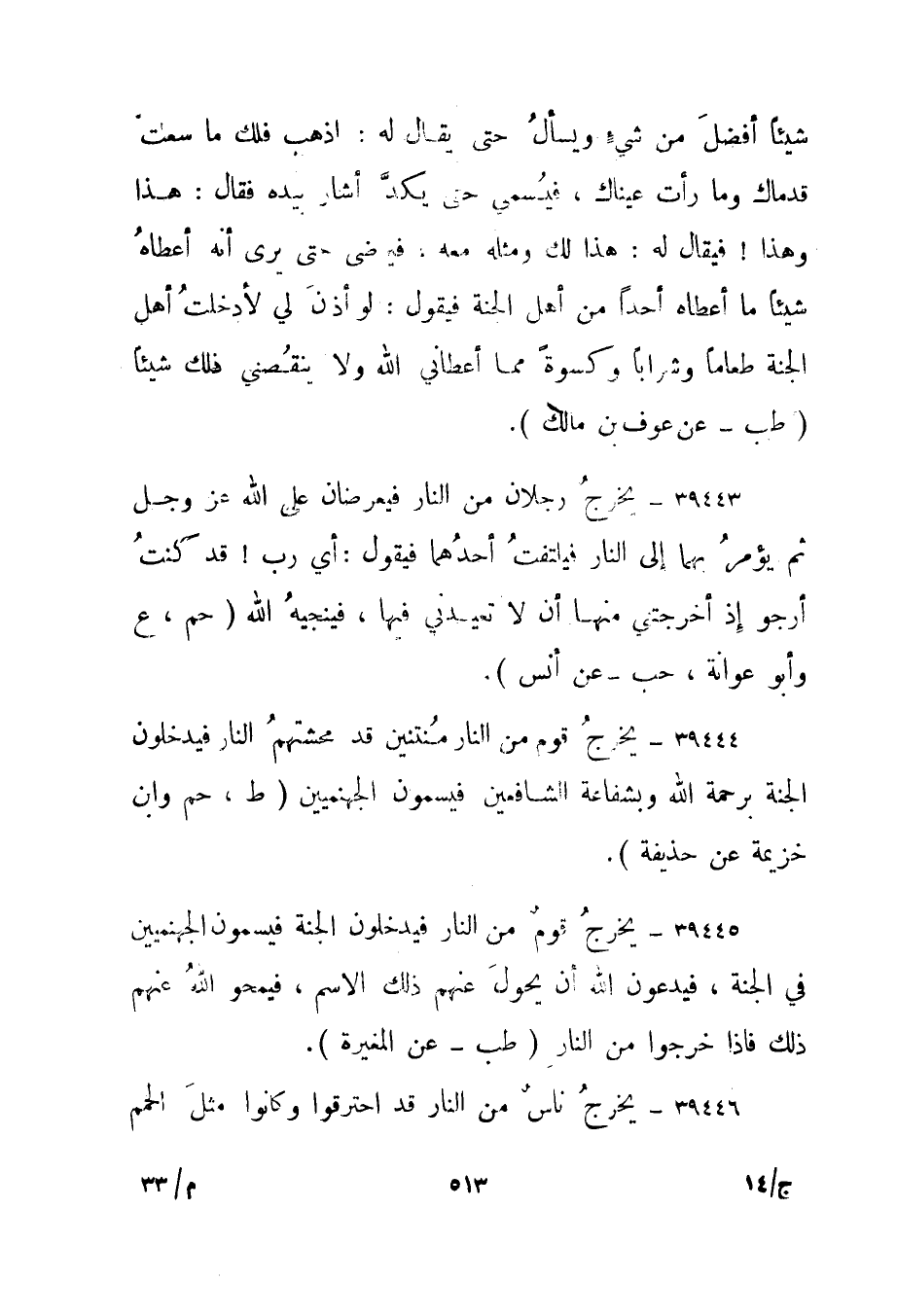 39446- "يخرج ناس من النار قد احترقوا وكانوا مثل الحمم