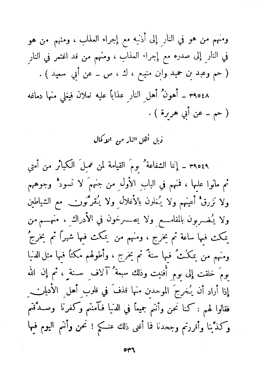 ومنهم من قد اغتمر في النار." حم وعبد بن حميد وابن منيع، ك، ص - عن أبي سعيد".