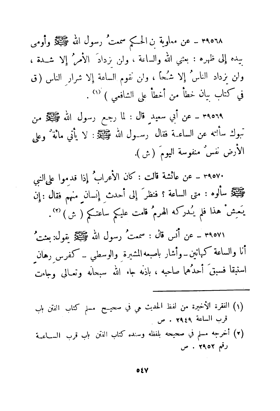 1 الفقرة الأخيرة من لفظ الحديث هي في صحيح مسلم كتاب الفتن باب قرب الساعة 2949.ص.