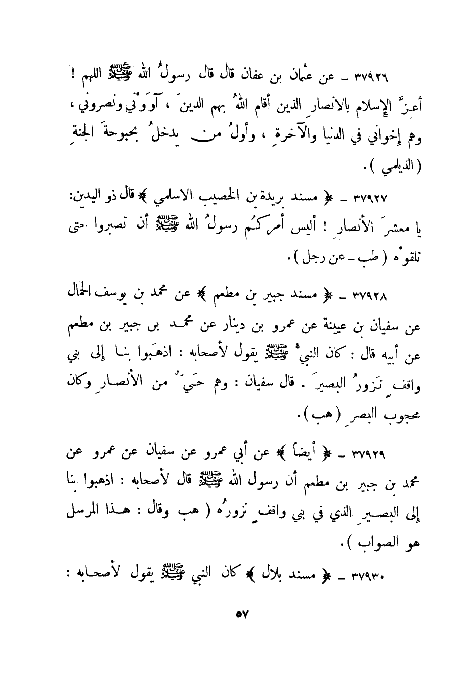 37930- "مسند بلال" كان النبي صلى الله عليه وسلم يقول لأصحابه: