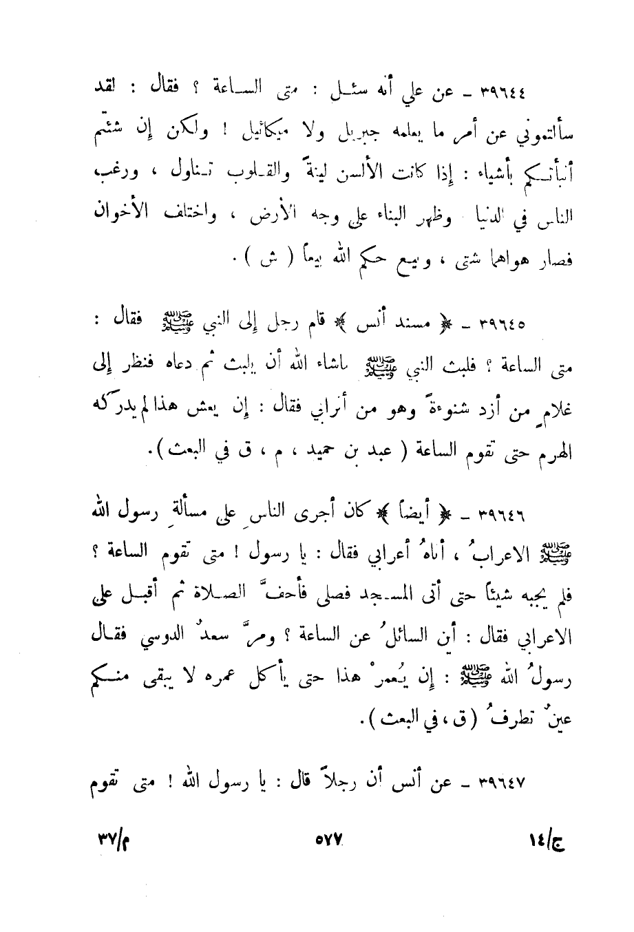 39647- عن أنس أن رجلا قال: يا رسول الله! متى تقوم