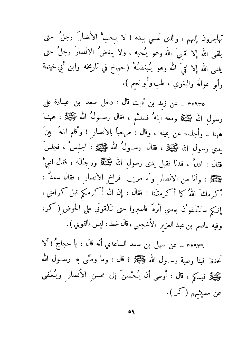37936- عن سهل بن سعد الساعدي أنه قال: يا حجاج! ألا تحفظ فينا وصية رسول الله صلى الله عليه وسلم؟ قال: وما وصى به رسول الله صلى الله عليه وسلم فيكم، قال: "أوصى أن يحسن إلى محسن الأنصار ويعفى عن مسيئهم". "كر".