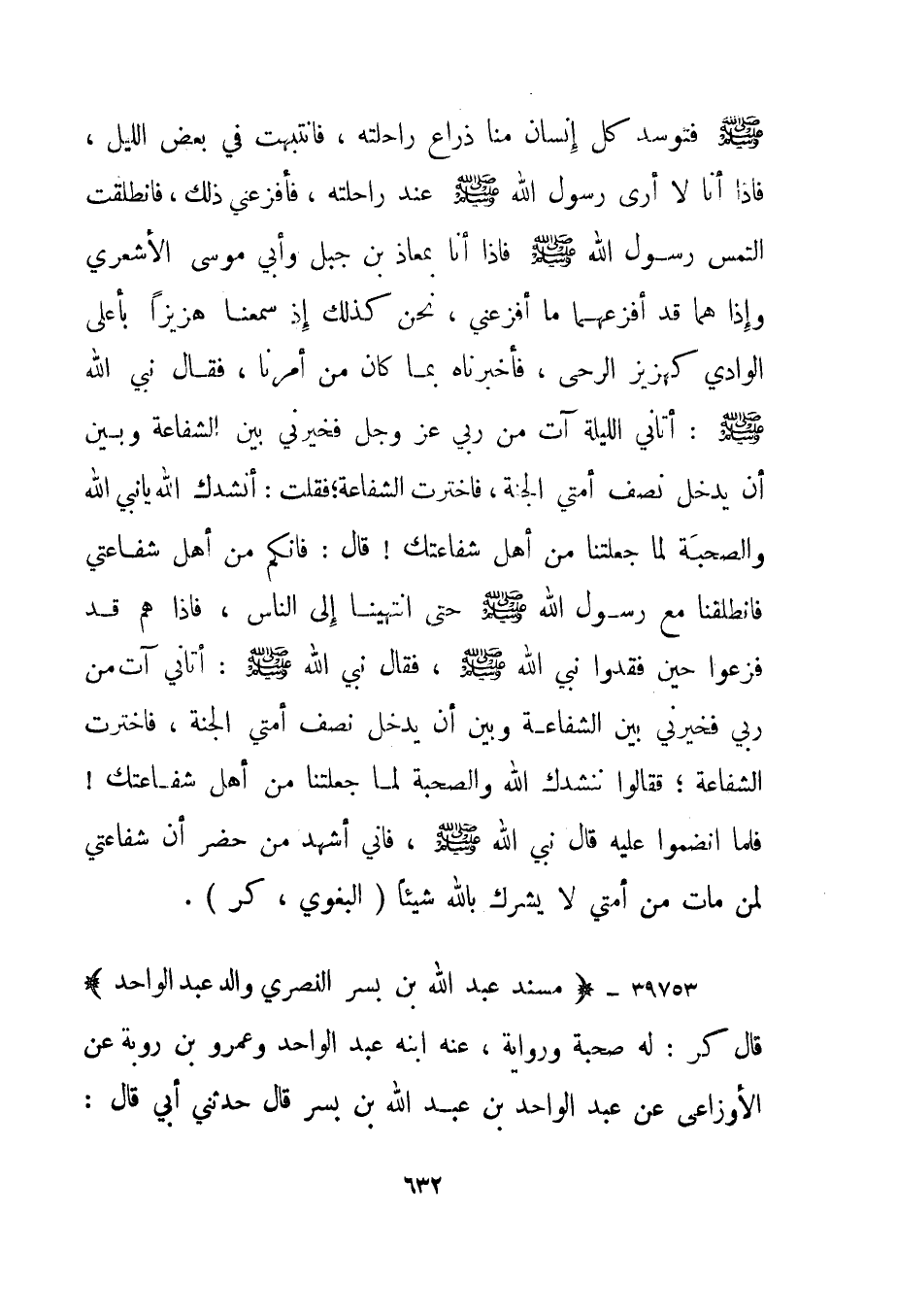 39753- "مسند عبد الله بن بسر النصري والد عبد الواحد" قال كر: له صحبة ورواية، عنه ابنه عبد الواحد وعمرو بن روبة عن الأوزاعي عن عبد الواحد بن عبد الله بن بسر قال حدثني أبي قال: