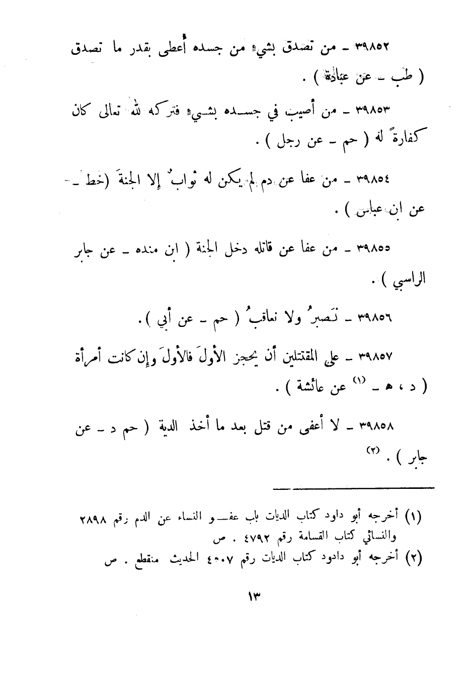 39858- "لا أعفى من قتل بعد ما أخذ الدية". "حم د - عن جابر" "2