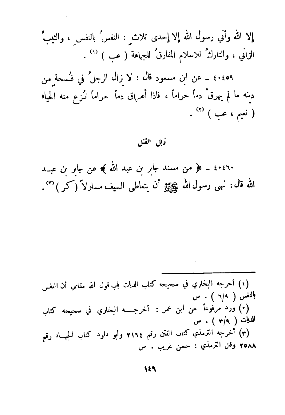1 أخرجه البخاري في صحيحه كتاب الديات باب قول الله مقامي أن العفس بالنفس "9/6". ص.
